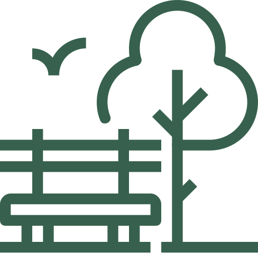 Lush green space for walks, relaxation, and outdoor leisure.